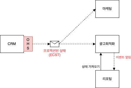 - CRM 은 이벤트를 통한 상태 전송(ECST) 방식으로 프로젝션을 발행하고, 구현 디테일을 감춤